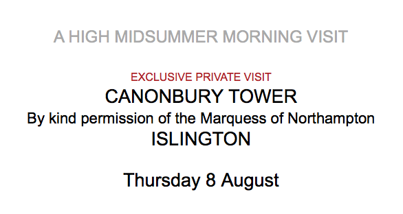 Cost: £100 members, £110 non-members, including private access fee to Canonbury Tower.