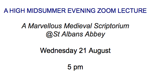 We study these and other treasures by means of modern technology with a Zoom lecture in concert with our visit to St Albans Cathedral, or attended for its own sake. These illuminated manuscripts are amongst the most vividly coloured, imaginative, and earnest illustrations of text that can be seen anywhere in the world. While ensconced in the most comfortable seat in the house, a drink of some sort in hand, nibbles close by, please join us for an hour with the creations of devoted monks whose religious fervour inspired and immortalised this rare art form.