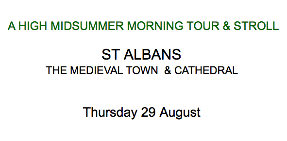 A short architectural walk, with many pauses, through medieval streets of St Albans to the Cathedral grounds, begins from the station onward. Walking poles welcome!