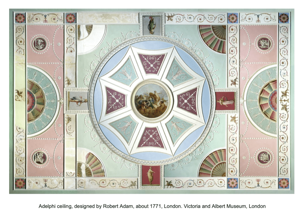 Sir Christopher Wren, as we saw from our recent celebratory course, approached architecture via astronomy and mathematics. Robert Adam, born five years after the death of Wren into the family of the most distinguished Scottish Palladian architect William Adam, was a product of the Edinburgh Enlightenment: the world of Adam Smith the economist, of David Hume the philosopher, of James Hutton the geologist, and of Allan Ramsay the painter. Adam’s educational background, unlike that of many of his contemporary architects, was steeped in classical studies. From the age of eight on, his classes at the Royal High School Edinburgh were conducted in Latin.