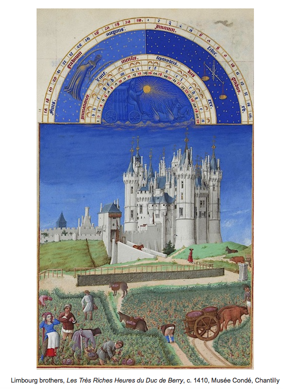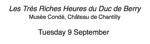 From annual Christmas cards if nothing else, many are familiar with the brilliant calendar illuminations of the Très Riches Heures du Duc de Berry. This astonishing work of art is in the permanent collection of the Musée Condé, a museum tucked inside the Château de Chantilly. The museum boasts a superb collection of art second only to the Louvre. We see how there is far more to this beautiful book than the calendar illuminations: Gospels, Prayers to the Virgin, the Fall of Man, Psalms, Hours of the Cross and of the Holy Ghost are also exquisitely illuminated by the Limbourg brothers, Jean Colombe and others. Originally created for the brother of Charles V of France in the early 15c, it had further glorious images added at the end of the century. Its miniatures have been examined by few, but reproductions of some of them have been circulated widely, and have even succeeded in shaping an image of the French Middle Ages for many in the 20th and 21st c.
