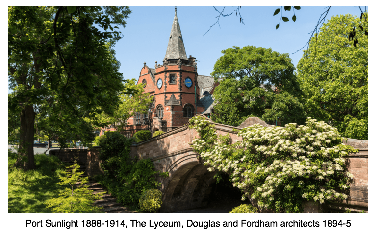 There was more to such model villages than well-designed cottages though. Just as Bedford Park had its own Club, so these model villages too had their own social clubs, dining rooms, games rooms, lecture rooms and cricket pitches. Akroyden had its own Working Mens’ College, and Port Sunlight its own Art Gallery. Of course all villages were distinctly patriarchal, as indeed was Bedford Park in its early days.