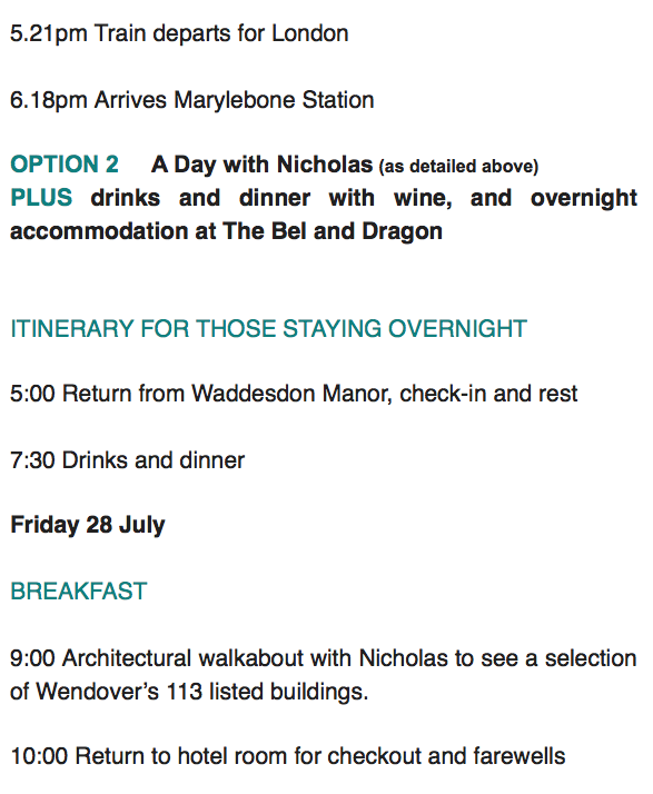 You may join Nicholas for the Day with lunch, private tour and tea, or make a Two-Day event out of it by joining him for the Day, as well as for dinner, bed and breakfast at the lovely Bel and Dragon Inn in Wendover. Full details can be found below.