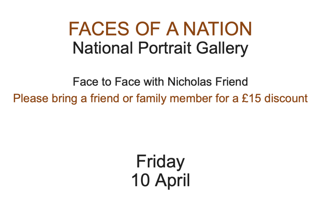 This study day at the National Portrait Gallery has been developed by Louise Friend and will be presented by Nicholas Friend. It is held on Tuesdays, beginning on Tuesday 21 April until Tuesday 23 June 2026 at 5pm.