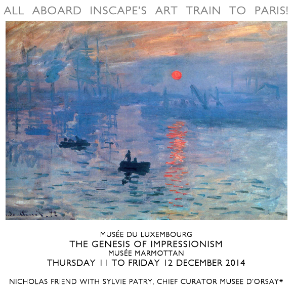 *Sylvie Patry is Chief Curator of Impressionist and Post-Impressionist Paintings at the Musée d’Orsay, Paris. She is the co-curator of the Musée du Luxembourg exhibition on Durand-Ruel (collaborating with the National Gallery, London and the Philadelphia Museum of Art). She has co-curated international exhibitions on Maurice Denis, Hodler, Renoir, Orsay’s Masterpieces and, significantly for us, the Monet exhibit at the Grand Palais, INSCAPE ‘s first Art Train event in 2011. She is the author of various publications on Denis, neo-Impressonism and Fantin-Latour published by the Musée d’Orsay (including, Renoir, Van Gogh, Gauguin, Cézanne and Beyond: Post-Impressionist Masterpieces from the Musée d’Orsay, and the Editor of Inventing Impressionism, Paul Durand-Ruel and the Modern Art Market).