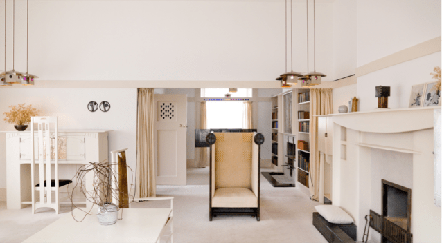 In the 1890’s Glasgow, one of the most prosperous cities in the world, was a bustling hub of shipbuilding and trade. Victorian industry and engineering acumen brought world attention to its pre-industrial port. Goods and services thrived on the vast sums that flowed: Glasgow was well-primed for a concomitant cultural lift. At the time, Art Nouveau was sweeping over the European continent as the principal avant garde direction in design and architecture. Fortunately, in Glasgow at the right time and place were a group of Scottish artist/designers associated with the Glasgow School of Art. Known as the Glasgow Four, sisters Margaret and Frances Macdonald, graduates of GSA, talented painters and glass artists, married architect Charles Rennie Mackintosh and painter Herbert MacNair, respectively. The intimate Four soon dominated the Glasgow art world. Later their oeuvre was dubbed the ‘Glasgow Style’, a quieter but more lyrical form of “Art Nouveau’ architecture and design. The Mackintoshes are arguably the only British designers whose work stands alongside their continental contemporaries in the extraordinary Vienna Secession.