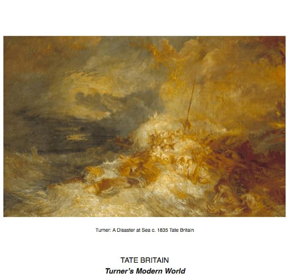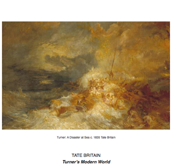 One of Britain’s greatest artists, J.M.W. Turner lived and worked at the peak of the industrial revolution. Steam replaced sail; machine-power replaced manpower; political and social reforms transformed society. Though many artists ignored these changes, Turner met these new challenges with full-on expressive works of art. This exhibition will show how he transformed the way he painted, the to better capture this new world. Bringing to London works seldom or never seen by the general public, the show investigates Turner as one who bore witness to a time of enormous technological change in the early – mid 19c, a time to match our own dizzying experience of computers in the 21c. He communicates his very subjective response to smoke-filled skies from belching factories with swirling, quivering slashes of paint, to make what Jonathan Jones of the Guardian has written is ‘a roaring, wondrous whirlpool of a show: from the most devastating depiction of the slave trade ever to an erotically-charged shipwreck, JMW Turner’s heart-stopping maelstroms of sea and steam and smoke made him a true visionary of his age’.