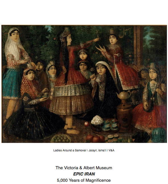 The ancient Greek historian, Herodotus, describes what the Persian empire looked like to outsiders and how the Greeks defined themselves, and hence “the West”, against it. This exhibition at the V & A aims to give us the opposite view – from inside. Set within an immersive design that transports visitors to an ancient Persian city, complete with gatehouse, gardens, a palace, and a library, Epic Iran explores the monumental artistic achievements of Persia, one of the greatest civilisations of the world. Spanning 5000 years of art, design, and cultures – from the earliest known writing through to the 1979 Revolution and beyond – the works in this exhibition reflect a rich continuum of a refined culture. A pride in history, such as that shown in The Shahnameh, The Book of Kings, written at the start of the 11th century CE by the poet Ferdowsi, preserved traditions across the millennia. We will see how Iran’s unique geographical situation served as a land bridge between east and west permitting influences from China, Mesopotamia, Greece, the Mongols. Epic Iranreveals a stunning cultural history that connects the country- as it is today- with the people who lived there five millennia ago.