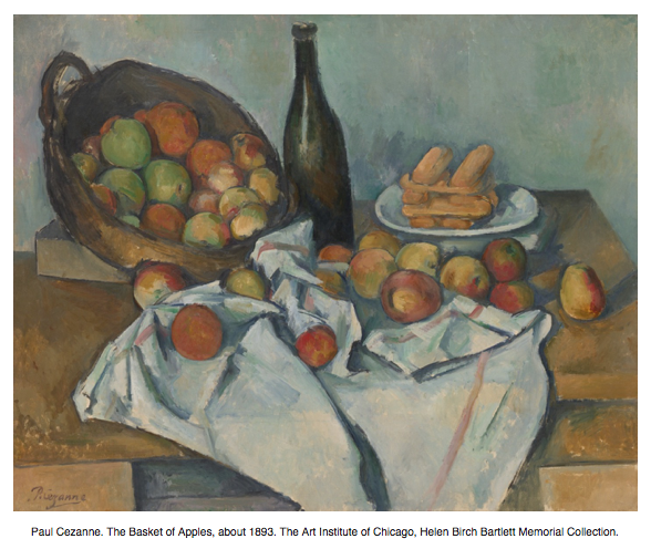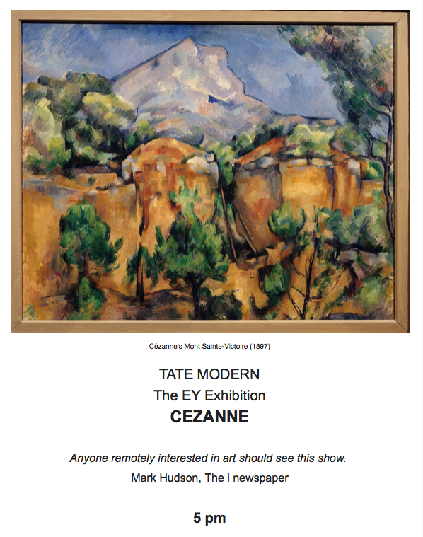 Tate Modern is to be congratulated on bringing to our capital the finest group of Cézannes we are ever likely to see from collections all over the world, a rare thing in these days of restrictions on and costs of travel for art objects. These are paintings which hold your attention so forcefully it is difficult to tear yourself away from them. We find ourselves puzzling through how Cezanne, understandably seen as ‘the painter’s painter’ and regarded by Matisse as ‘the father of us all’, creates such exquisite balances of colour and forms, such variations in colour and rotundity of fruits, such drama in the positioning and folds of a simple tablecloth, such understanding of the pulsing changes and rhythms of trees and grass. His work never ceases to inspire and teach generation after generation of artists and viewers alike.