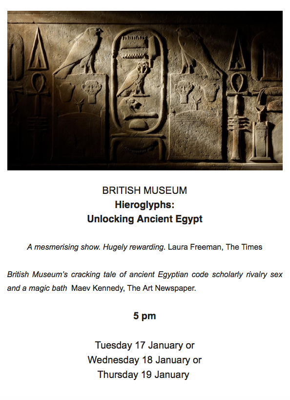 We address the British Museum’s winter blockbuster on Egyptian Hieroglyphs as an intriguing form of abstract visual communication. We set hieroglyphs in the context of other early writing systems as well as looking at the long and intricate history of their decipherment from the critical revelations provided by the Rosetta Stone in the 18c through to our current ability to fluently read these beautiful pictographs from the walls of Egyptian tombs. From Sumerian cuneiform to Ogham script, we discuss the inventiveness and beauty-in-conciseness of such ancient alternative ways of recording and communicating mundane as well as sacred news from the grave.