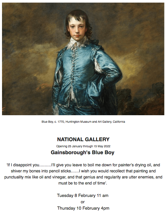 Leaping forward in English culture to those who actually gave Englishness much of its meaning, we ask why Gainsborough’s ‘Blue Boy’ should have become the most famous of all his pictures 100 years after his death. When painted in 1770 it was a brilliant rebuttal to his rival Sir Joshua Reynolds’ injunction that blues should always be reserved for conveying distance in a painting. We ask ourselves what is it about the painting that has so captured the imagination of British and American spectators alike.