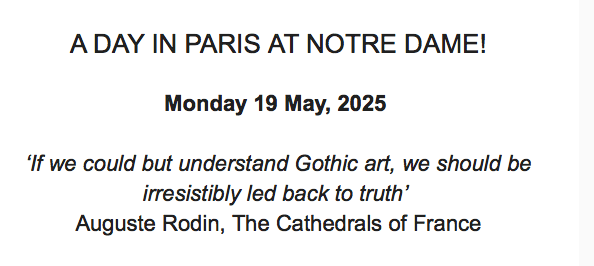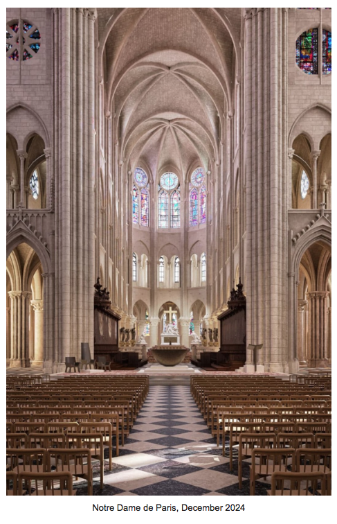 You can of course arrange to make this Notre Dame day a centrepiece of several days’ trip to Paris, or, like Nicholas, you can simply take the 8 a.m. train from St Pancras to Paris Gare du Nord, making an exemplary single day of it before returning on the 6 pm train to London. Either way, we will meet for lunch in a charming traditional bistro on Île St Louis, Le Flore En L’ÎIe, before exploring the glorious, literally uplifting flying buttresses and restored spire of Notre Dame before witnessing one of the most remarkable renovations of any historic interior in Europe. This is Notre Dame as you have never seen it, if indeed you have ever seen it. A gleaming, soaring, light-filled architectural experience awaits you! Whether you can come on this special day or not, we offer you a special four-session Zoom course by way of edification and inspiration!