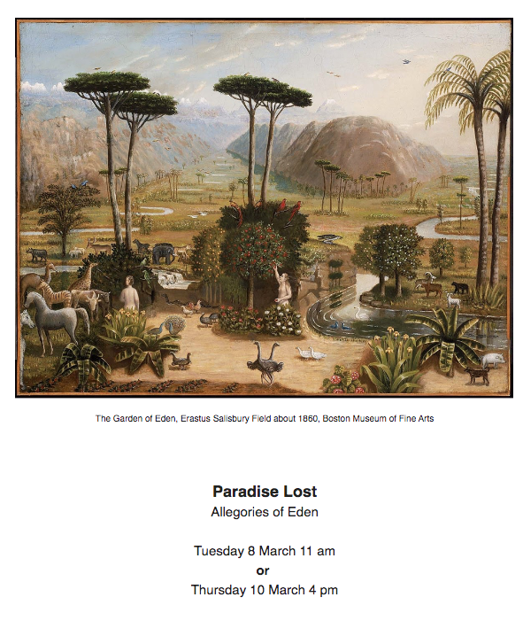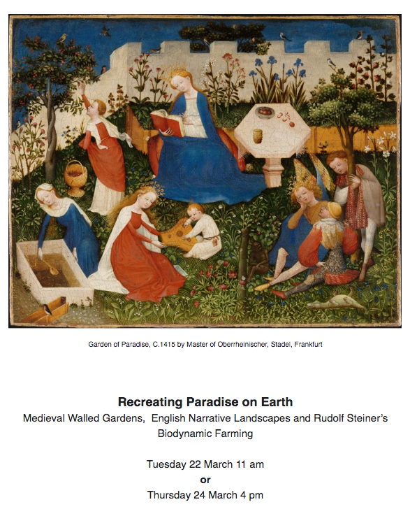 Can our understanding of Paradise be depicted? Yes, from painters like Tintoretto and John Martin to Persian miniaturists, from 16c rug-weavers to Emil Nolde in early 20c Germany, we will see that many certainly thought so. Can Paradise be recreated on earth? Yes, medieval and 18c gardeners and certain visionaries and utopian communities thought so as they strove to live their notion of heaven on their own soil. Could Paradise be discovered on earth? Yes, so thought those pioneering settlers who colonized vast swathes of Western America inspired by visions of the ‘Promised Land.’ Later, freed from the conventional religious representations of Heaven/Eden, modernist artists created their own paradises with explosions of colour in huge-flowered jungles, and other-worldly juxtapositions of flora and fauna, and nonrepresentational artists used colour to achieve transcendence as we see in the mighty canvases of Mark Rothko.
