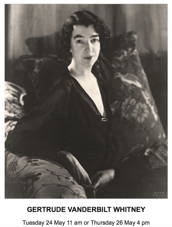 Gertrude Vanderbilt Whitney’s middle name was so well known that when she first exhibited her work as a sculptor she had to adopt a nom-de-plume in case she was not taken seriously as an artist. She went on, in the teeth of family disapproval, to become one of the most distinguished American sculptors and collectors of the 20c. She became a supporter of under-represented American artists, housing and feeding them and inviting them to parties on Long Island where there were ‘sunken pools and gorgeous white peacocks as line decorations spreading into the garden’. The work of these once little-known artists such as George Bellows, Thomas Hart Benton, Robert Henri and Charles Sheeler went to form the core of the ground-breaking Whitney Museum of American Art in New York.