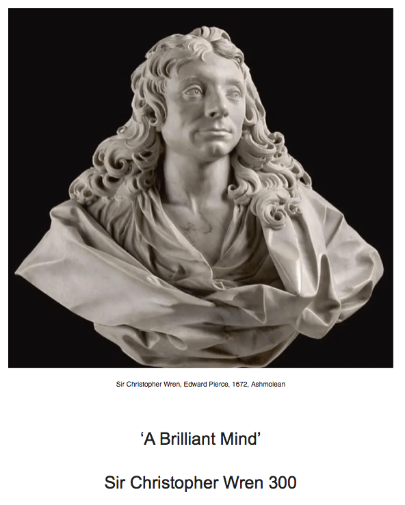 Christopher Wren was not just the greatest English architect. He was the nearest any Englishman has come to being a “Renaissance Man”despite many who have died trying. One of Wren’s friends, Robert Hooke, scientist and architect, and a fellow Westminster schoolboy said of him, “Since the time of Archimedes there scarce ever met in one man so great perfection, such a mechanical hand, and, so philosophical a mind.”