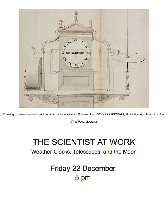 Soon after completing his Oxford degree, he became a Fellow of All Souls where he constructed a transparent beehive for scientific observation; he made a model of the moon for King Charles II. At the age of 25 he was appointed Professor of Astronomy at Gresham College, where he helped construct a 35 foot telescope. He played a key role in the development of the Royal Society, and later was its President. He was elected Savilian Professor of Astronomy at Oxford in 1661 at the age of 29; while there he invented the ‘tipping bucket’ rain gauge; he designed a “weather-clock” that would record temperature, humidity, rainfall and barometric pressure, as well as inventing a tool for constructing perspective.