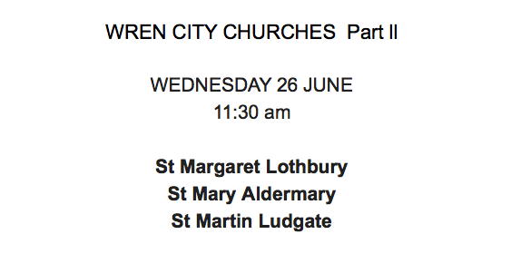 Wren’s city churches make contrasting kinds of architectural music. With increased understanding and awareness of Wren’s 51 City churches and the new St Paul’s Cathedral, we may eventually ‘hear’ a great Wren symphony composed especially for London! We hope you will join us for another illuminating Wren city event.