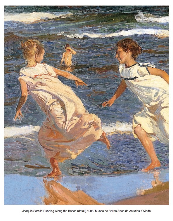 Meanwhile, the slashing brushstroke served quite other purposes. In making the portraits of Madame X and Mrs Colin Campbell, late 19c women who refused to be contained by expectations of domestic bondage and Victorian modesty, Sargent and Boldini saw that only the visible brushstroke could serve their purposes. Meanwhile, in Spain, Joaquin Sorolla, the newly acclaimed Spanish Impressionist, transmuted his passion into a particular preoccupation with the effects of light, represented in great swirls, as if he had also seen what the scientists discovered, that light does indeed move in waves.