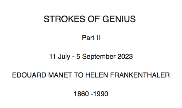 In this second part of ‘Strokes of Genius’ for summer 2023, we experience even greater thrill as we watch how artists from the Impressionists to the Abstract Expressionists infinitely varied a wider choice of brushes and made strokes sing for their supper. Whether presenting water, skies, topography, skin, costume, light, space, colour, the perceptible effect of the strokes themselves independent of ‘subject’, is one of direct energetic force.