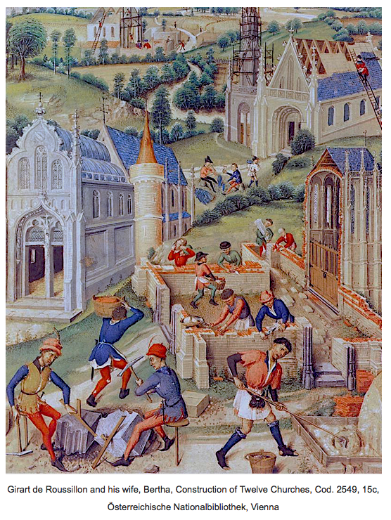 We can view Gothic building sites in astonishing detail in medieval manuscript illuminations of this period. It is these primary sources to which we shall turn for the documentation of the methods used in each stage of the building of a great cathedral whether in Europe or Britain. A wealth of material is depicted in these colourful and engaging illustrations.