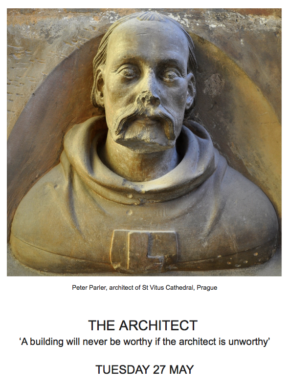 The architect was not only a master builder, but an intellectual, a man possessed of scientia or specialized knowledge. We are increasingly aware of their names, sometimes even of their appearance, as the architect of St Vitus Cathedral in Prague, seen above. Garin in Verdun in 1131 was said to be more learned than Hiram of Tyre, builder of the temple of Solomon. William of Sens, and, then William the Englishman introduced flying buttresses into England at Canterbury Cathedral. Villard de Honnecourt in the 13c left us drawings and building instructions, even though no building has been proven to be designed by him. Arnolfo di Cambio was master of works for Florence Cathedral in the time of Giotto. Henry de Reyns was one of three principal architects of Westminster Abbey, and brought to its distinctly French style his experience of the cathedrals of Reims, Amiens and Chartres.