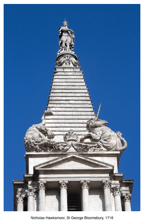 The materials of his architecture communicate through resonance and dissonance almost as instruments in musical composition. Hawksmoor’s buildings are Shakespearean, full of conflict and anxiety, as well as ultimately balanced resolution. They are uniquely suited to London, a city without logic, without avenues or particularly long vistas, utterly unlike Paris, or Vienna, Berlin or Buenos Aires. These buildings stamp their identity on their sites, paying no attention to what is around them, standing as monuments to Hawksmoor’s wrought passion and unageing intellect.