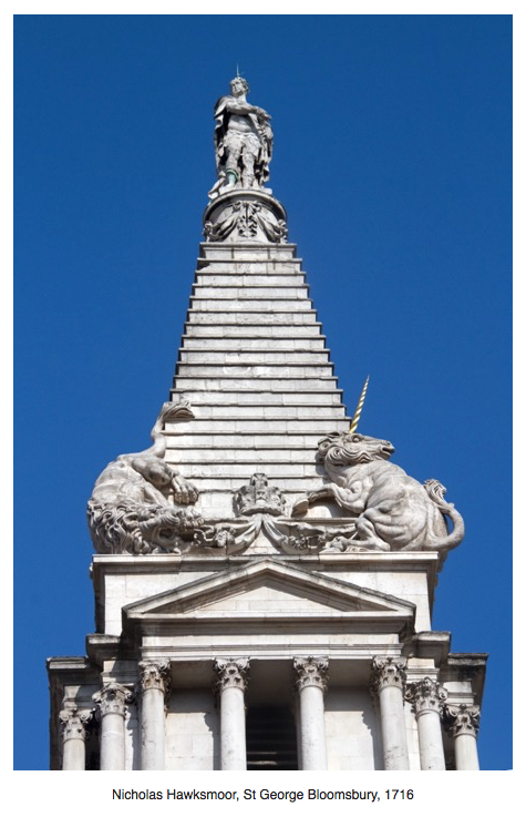 The materials of his architecture communicate through resonance and dissonance almost as instruments in musical composition. Hawksmoor’s buildings are Shakespearean, full of conflict and anxiety, as well as ultimately balanced resolution. They are uniquely suited to London, a city without logic, without avenues or particularly long vistas, utterly unlike Paris, or Vienna, Berlin or Buenos Aires. These buildings stamp their identity on their sites, paying no attention to what is around them, standing as monuments to Hawksmoor’s wrought passion and unageing intellect.