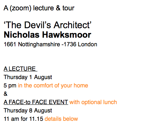 Please join us as we add our voices to a rebirth of interest in this idiosyncratic architect of the first order – a yeoman farmer’s son, who became a plasterer’s apprentice, then a factotum in Wren’s household, then onward and upwards, to leap after leap as he rose : firstly to become a draughtsman in Wren’s workshop to doing full-scale working drawings on St Paul’s, to becoming Clerk of the Works at Kensington Palace before moving on to partner with others on hugely prestigious commissions, and finally to work independently. We do so hope this two-part course will pique your curiosity and add to your understanding of the extraordinary architecture of an undeniable genius.