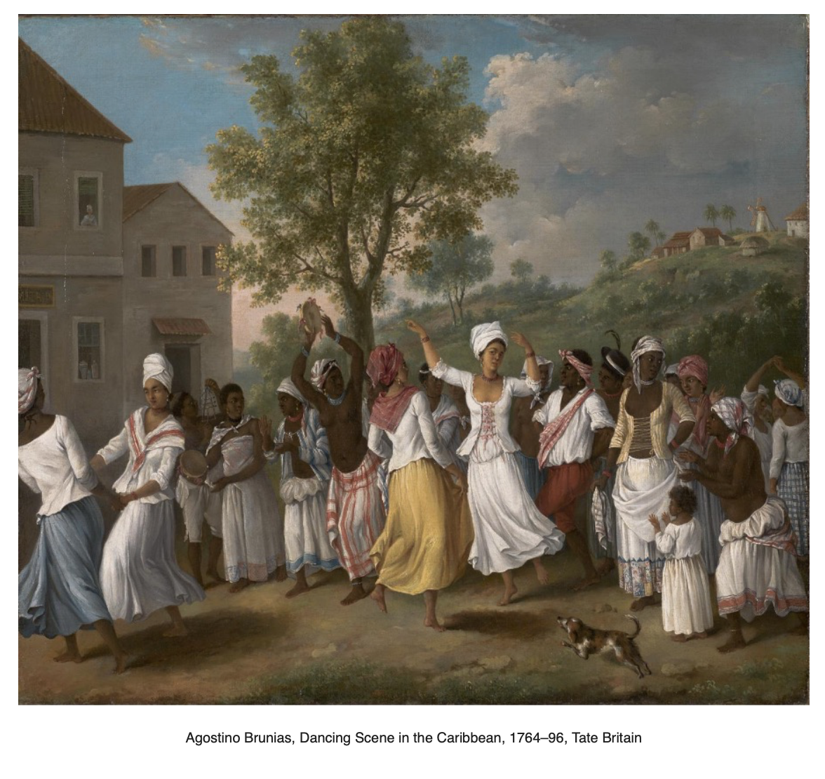 Tate Britain’s rehang invites a richer, sometimes unfamiliar, conversation with its visitors, revealing complexities previously avoided in the depths of British history. Works by the obvious greats whether Hogarth, Gainsborough, Turner, Millais or Burne-Jones are hung in the context of silent admissions of the greater truth about Britain’s history as a, sometimes polite, sometimes not so polite, subjugator drawing sustenance from conquered lands and enslaved humans. Paintings never seen before because of their ‘questionable’ content or little-known painters are presented not as blatant propaganda or strident dogma, but as honest attempts to allow viewers their own experience of the illuminating context of the works of art. The new hang illustrates how art can sometimes function as a dangerous form of dark magic in its capacity to conjure images that distract and disguise uncomfortable truths. Bucolic scenes of well-dressed slaves dancing, as in the image above, may actually deliberately conceal the brutality of the system embraced by many in the quest for human and other capital to fuel the empire.