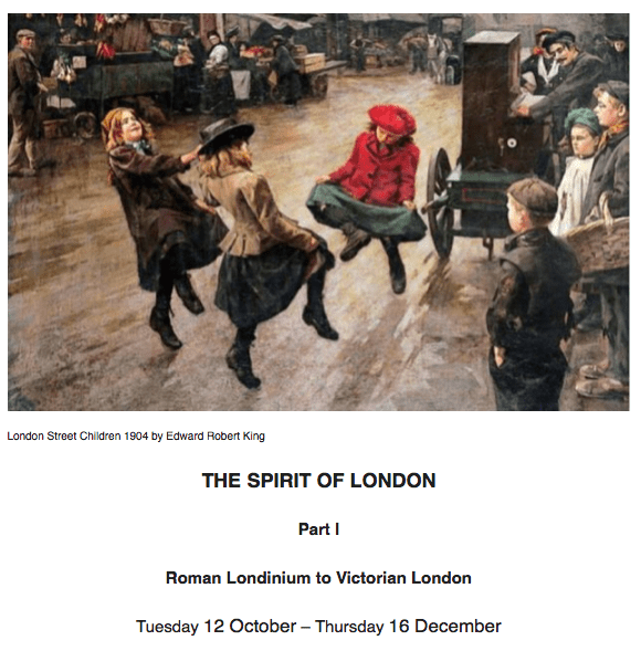This course, following our recent studies of its mighty river Thames, seeks to capture the unique spirit of London through the lens of its rare and distinct cultural and social legacy. What and who have contributed to its mighty presence? We begin with the first city walls and the first Palace of Westminster; we compare streets from Bond Street to Brick Lane and housing from Buckingham Palace to a tent on William IV Street; and we look at its many locations for art and artifacts from the National Gallery to the Bayswater railings, and then we go out into the green spaces of Kew, Chelsea, Kensington Gardens, the Squares, the palace gardens. We listen to music from Elgar in the Royal Albert Hall to Phyllis Tate in the Barbican; conjure up the voices of the actors in the Kings Head Islington as well as in the National Theatre. We encounter flower girls and chimney sweeps; thieves and philanthropists; bootblacks and builders; cabbies and crossing sweepers; glassblowers and gunsmiths; rat catchers and road menders; politicians and poets. We will look at the buildings of Edward the Confessor, Christopher Wren, Nicholas Hawksmoor, Sir Denis Lasdun and Richard Seifert; the maps of Wenceslaus Hollar and Claes Visscher, the poetry of William Dunbar, William Blake, T.S.Eliot and Anna Robinson; the paintings of Jan Griffier, Joseph Van Aken, William Hogarth, W.P.Frith, Walter Sickert, Mary Durham, Lady Rose Henriques, CRW Nevinson and Frank Auerbach; and the music of Haydn, Elgar, Marie Lloyd, Phyllis Tate, William Walton, Ralph Vaughan Williams, Adele and The Kinks. London inspires love and creative responses not because it is perfectly beautiful, but because it is so human, with all its flaws and foibles.