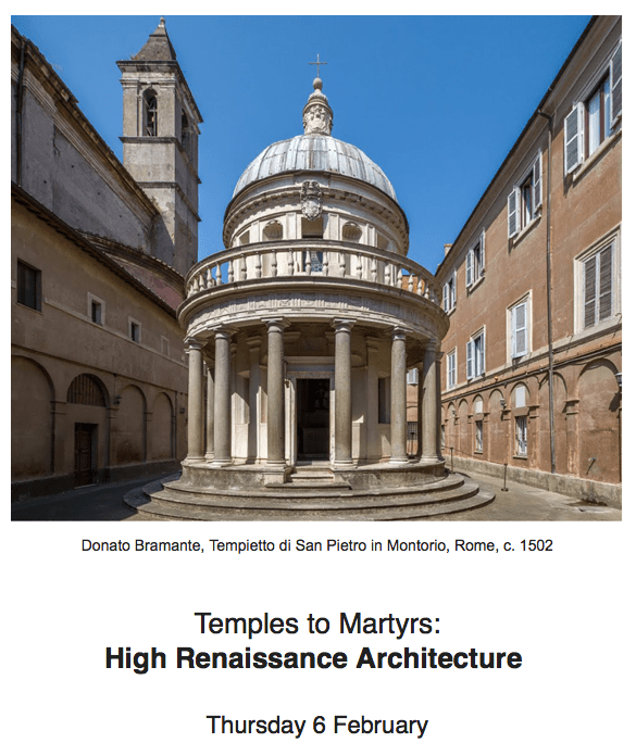 We discuss the work of Bramante, his followers and disciples such as Antonio da Sangallo, and end with the often thrillingly bizarre solutions to architectural problems of Michelangelo.