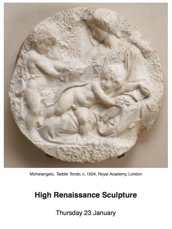What is High about the High Renaissance? has been developed by Louise Friend and will be presented by Nicholas Friend via video (Zoom). It is held on Thursdays, beginning on Thursday 16 January 2025 at 5 pm and ending on Thursday 20 March 2025 at 5 pm. Please note the time of 5 pm: Nicholas will be lecturing from London or California (for the duration of this course.