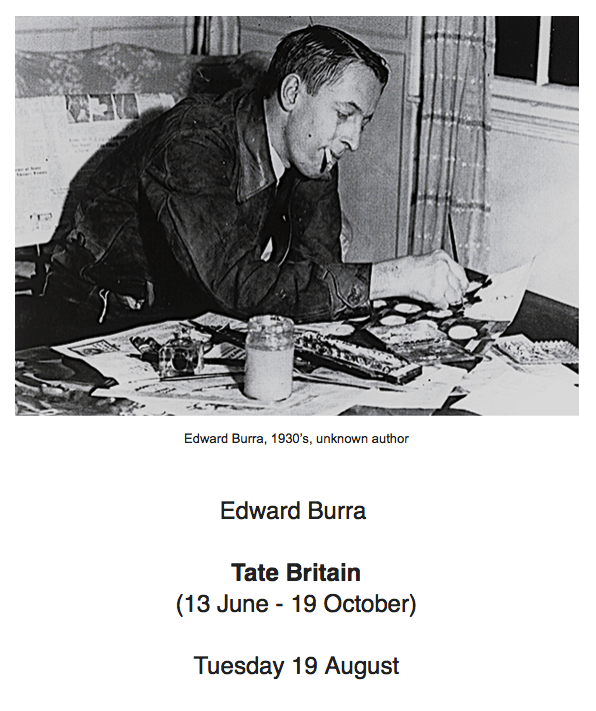 Partly because his work is so little known, and partly because it is impossible to pigeonhole into an ‘ism’, Edward Burra (1905-1776) is the great, thrilling, surprise of British 20c painting. Exceptional amongst British artists, in his early paintings of the rough, magnificently jazz-driven fast world of Harlem New York, the louche Paris underbelly of the Place Pigalle in Paris; and the prostitutes of the docks of Marseilles, Burra painted dark thrillers of urban life in the margins and the gutters. Because he signed the Surrealist Manifesto in 1936, made Surrealist collages, and sometimes hid faces behind Ernst-like bird-masks, art historians have tended to categorise him as a Surrealist (and he hated categories), but he was far more than that: he was a Realist too, always looking for the essence, be it the macabre or the beautiful. A master of watercolour, he pushed the boundaries of this traditionally delicate medium to create bold imaginative works influenced by his response to cataclysmic world events, including the Spanish Civil War, WWII, and the impact of post-industrial revolution on marginalized communities. One of the most distinctive artists of the entire 20c, his talents included everything from stage and costume design for ballet, opera and theatre to otherworldly interpretations of English landscapes.